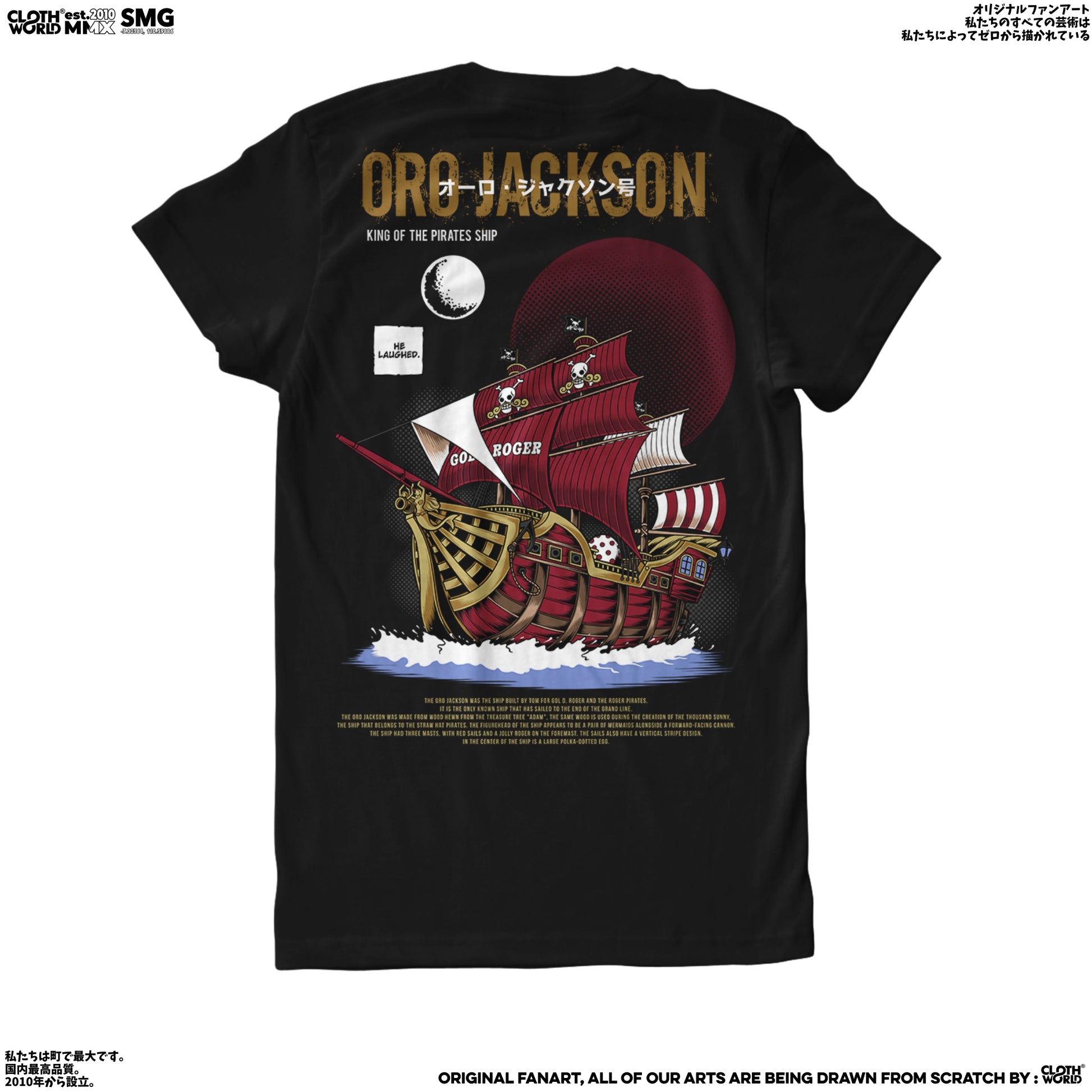 Set sail for adventure with the legendary Oro Jackson! This iconic ship design captures the spirit of exploration and freedom cherished by the Roger Pirates. Perfect for One Piece fans who dream of joining Roger's crew!